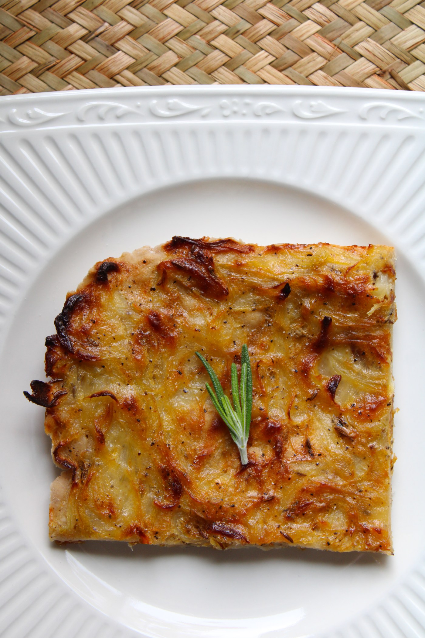 Onion Caraway Bread Tarte: https://www.f1cookbook.com/blog/onion-caraway-bread-tart (no alterations)