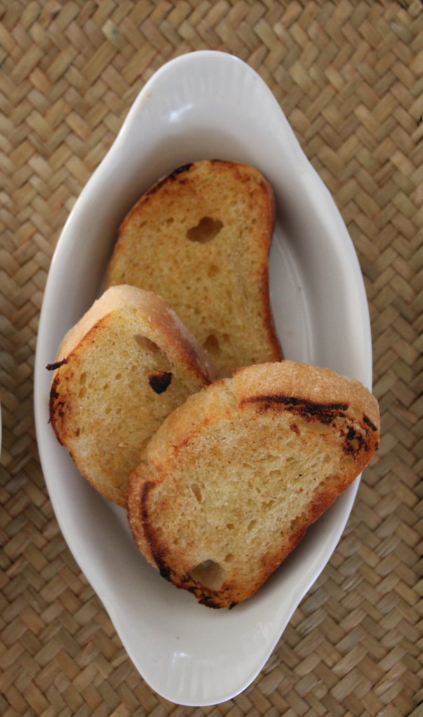 - While the mussels cook, make the sourdough toasts. Combine olive oil, 1 tsp salt, and 1 tsp garlic powder in a small bowl. Slice your bread into 1-inch thick slices and lay the slices out on a cookie sheet. Brush the top side of each slice with the oil mixture, then pop in the broiler for 90-120 seconds (or until golden brown).