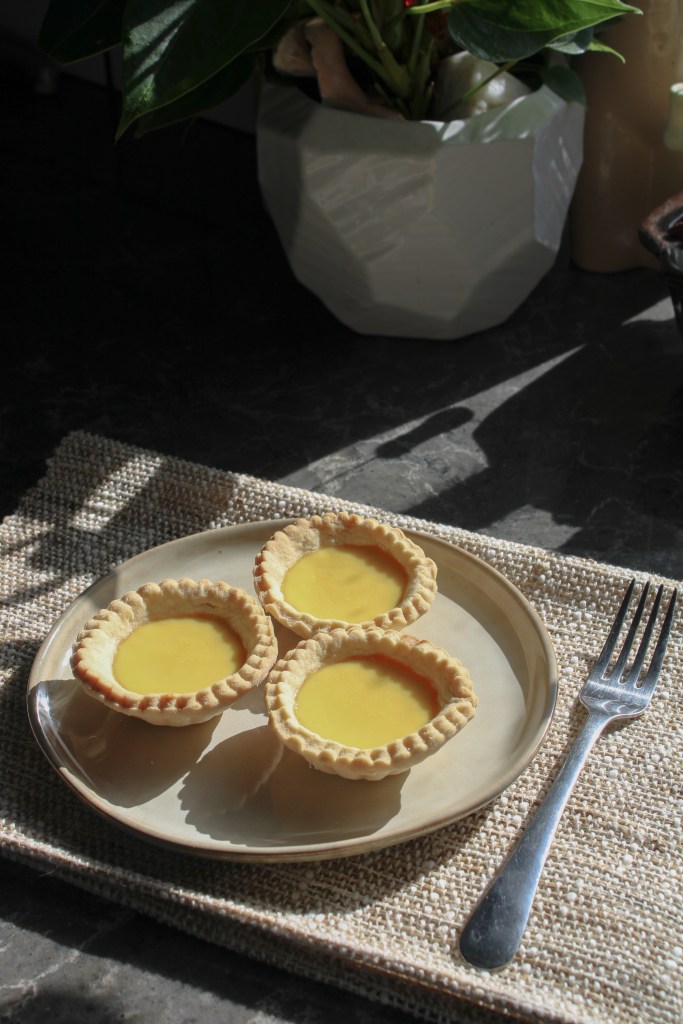 Thoughts: This was the most delightful little afternoon snack. The milk tea tasted like a warm and slightly simpler (but just as delicious) version of Thai iced tea, and the egg tarts were lightly sweet, custardy, and rich. I had a little trouble with dan tat pastry (it was a bit too crumbly and had trouble sticking together until I added some evaporated milk to bind it) but the end result tasted delicious, even if the dough wasn’t textbook-perfect.