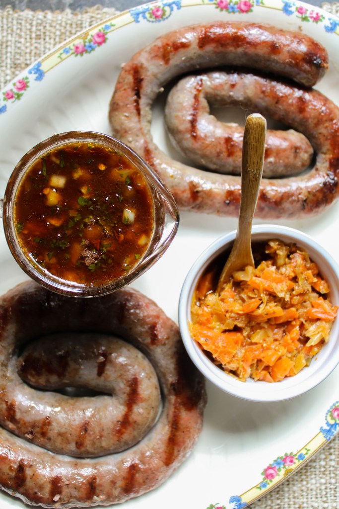 Boerewors: I picked these up from a specialty butcher shop near us and grilled them as if they were brats (shot for a 165°F internal temp).