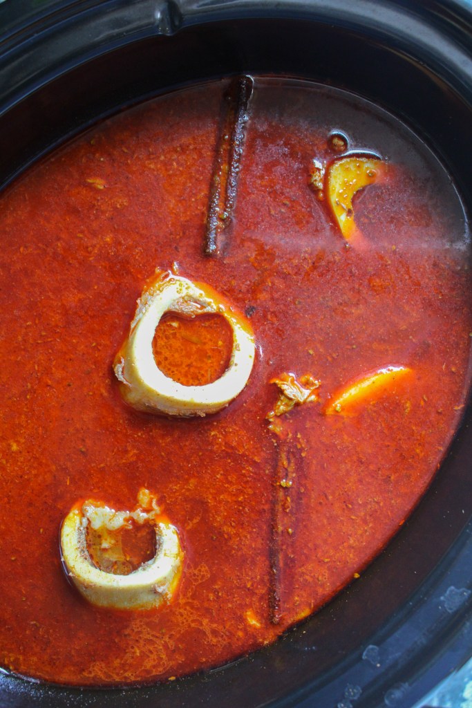Beef Nihari: (link and link): I ended up using an amalgam of these two recipes, as well as the recipe on the back of the nihari masala packet. I used the slow cooker cooking steps in the first link but made several changes. First, I used 4 bone-in beef shanks (instead of boneless) and after cutting the meat off the shanks for browning, I reserved the shank bones and boiled them along with 3 pounds of frozen beef knuckle. I boiled, skimmed off the scum, and strained the bones twice before removing about 75% of the marrow and adding them to the crockpot. I also did 8 cups of water and subbed cornstarch for flour during the thickening step, and instead of making the nihari masala mix myself, I ordered a readymade packet and saved some money. I thickened in the final 2 hours of cooking and also added cilantro stems at that point too!