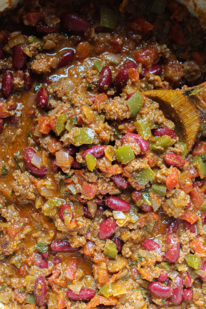 A good chili recipe is never final. Like most soups and stews, it only ever benefits from a little improv, and I don’t think I’ll ever be done experimenting with this one! That said, I’m confident enough in the base of my recipe to throw it on the blog in its current form, and besides… it’s NFL Kickoff Weekend. What’s football without chili?!