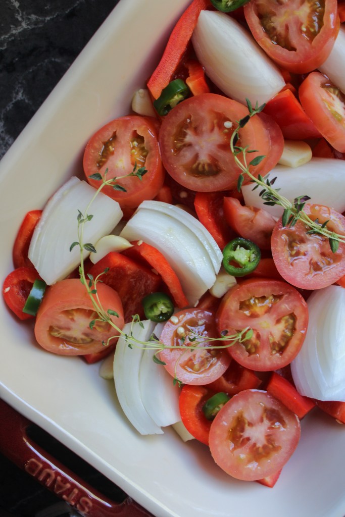 Jollof Rice: (link): This recipe was absolutely amazing and I made very few changes. I used 1 serrano pepper instead of the 2 habaneros (but only because I couldn’t find habaneros at the store!) and based on a tip I saw in a different jollof recipe, I cut and roasted the serrano pepper, tomatoes, onions, and garlic for 30 min at 400°F prior to pureeing them for the sauce. I ended up needing 8 total cups of chicken stock (I added 4 initially and then kept checking every 15 minutes during the rice cooking to make sure it didn’t dry out). Otherwise, I followed this recipe exactly!