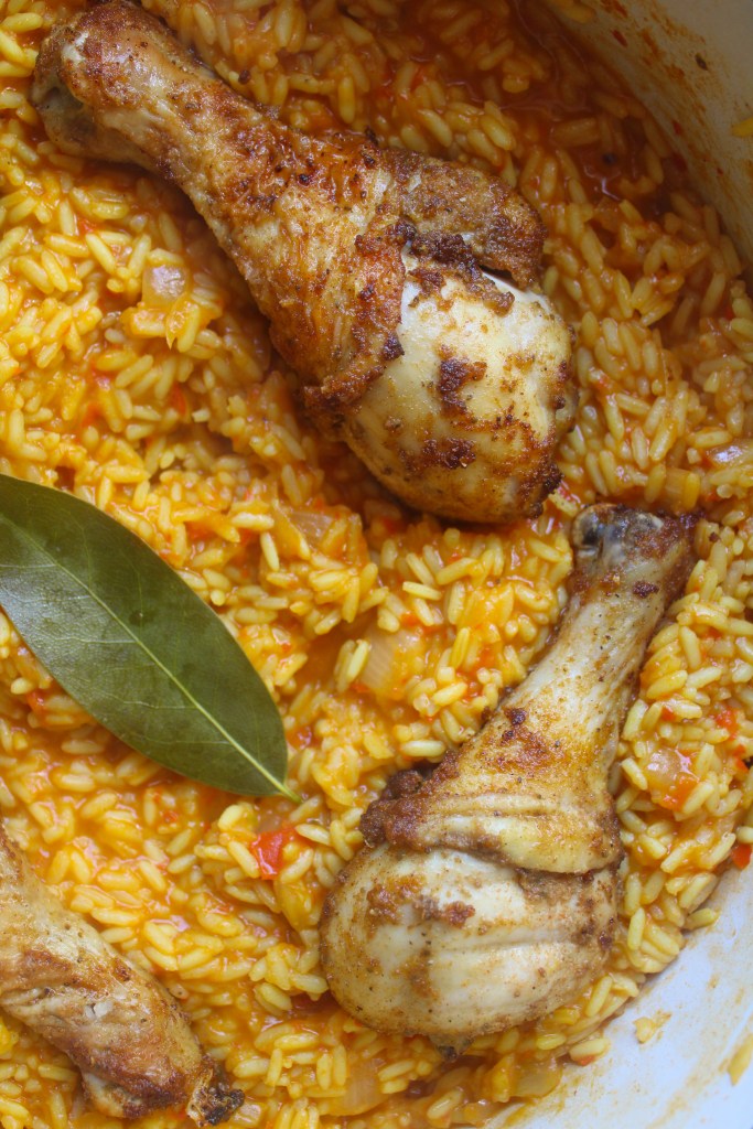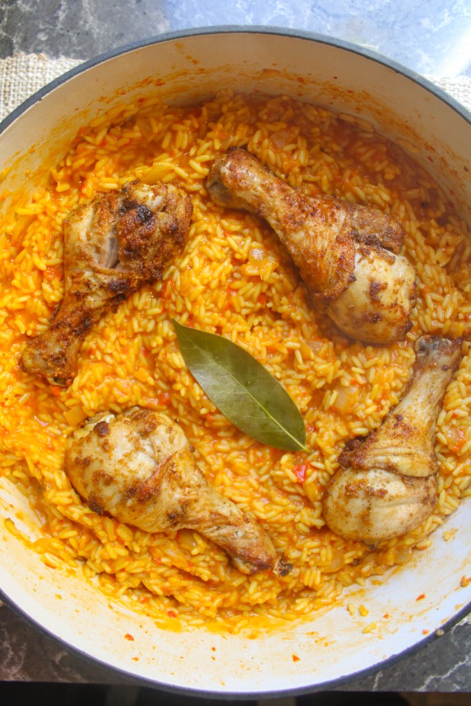 Menu: Jollof rice and chicken thighs | Recipe Source: cheflolaskitchen.com/