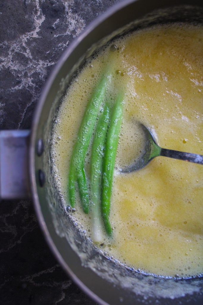 - My American brain couldn’t stop noticing the parallels between poutine and Thanksgiving gravy, and as a result, I legitimately could not stop myself from adding some allium and herbs to the gravy mixture. I doubled the recipe (too much is always better than not enough when it comes to sauces) and added 3 scallions + 1 bay leaf during the simmering step. I pulled the aromatics before I added the corn starch so that they wouldn’t form an insidious glue ball,