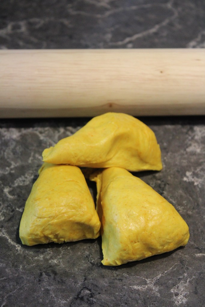 I took my culinary trip to Jamaica over Thanksgiving break and ended up cooking for 8 people in total. Trying to get everything on the table in a timely fashion meant that I didn’t have time to take very many photos, so when a packet of Jamaican curry powder that I forgot to delete from my cart showed up in my box of Amazon items this week, it was such a happy accident. Of the 5 things I made for Jamaica, the beef patties tied with the jerk chicken for my favorite menu item. Earthy, spicy, fragrant, and warm, they’re the perfect savory hand-pie and an absolute breeze to whip up. That said, intrepid chefs beware: thanks to the addition of turmeric and curry powder (both delicious) to the dough, beef patties are a complete and utter menace to your rolling pin, assembling surface, and hands. Everything gets stained a bright, vibrant, stubborn yellow, but trust me- it’s completely worth it.