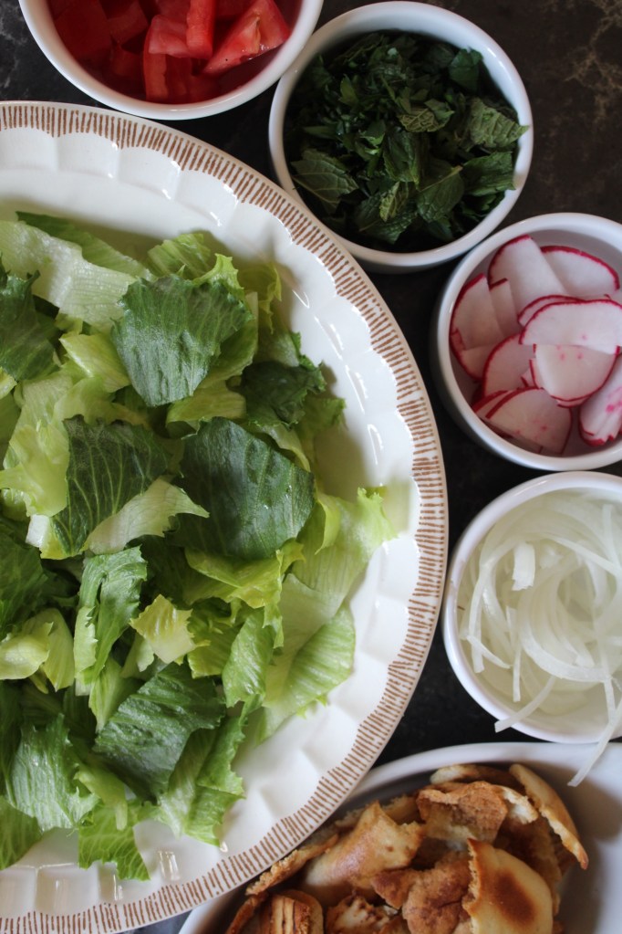Menu: Arayes, fattoush, and sharab el ward | Recipe Source: fufuskitchen.com, thekitchn.com, food.com