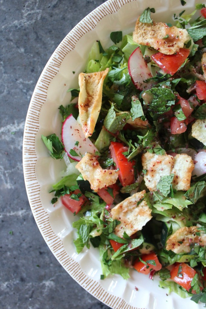 Fattoush (link): I added 1/2 tsp pomegranate molasses to the dressing and juiced 2 lemons instead of one, but otherwise followed this exactly!