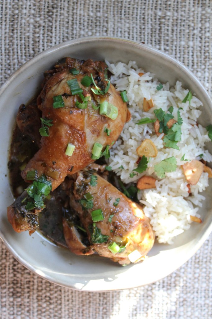 I love a recipe that repurposes marinade instead of having you discard it, and in adobo chicken, the marinade ends up becoming a sauce that’s the heart and soul of the dish. Tangy, malty, and punctuated by sharp notes of citrus, it’s used to slowly simmer the chicken until it’s cooked to tender perfection. The garlic fried rice was simple but fragrant and delightfully crunchy, and it was a perfect vessel for soaking up the adobo sauce.