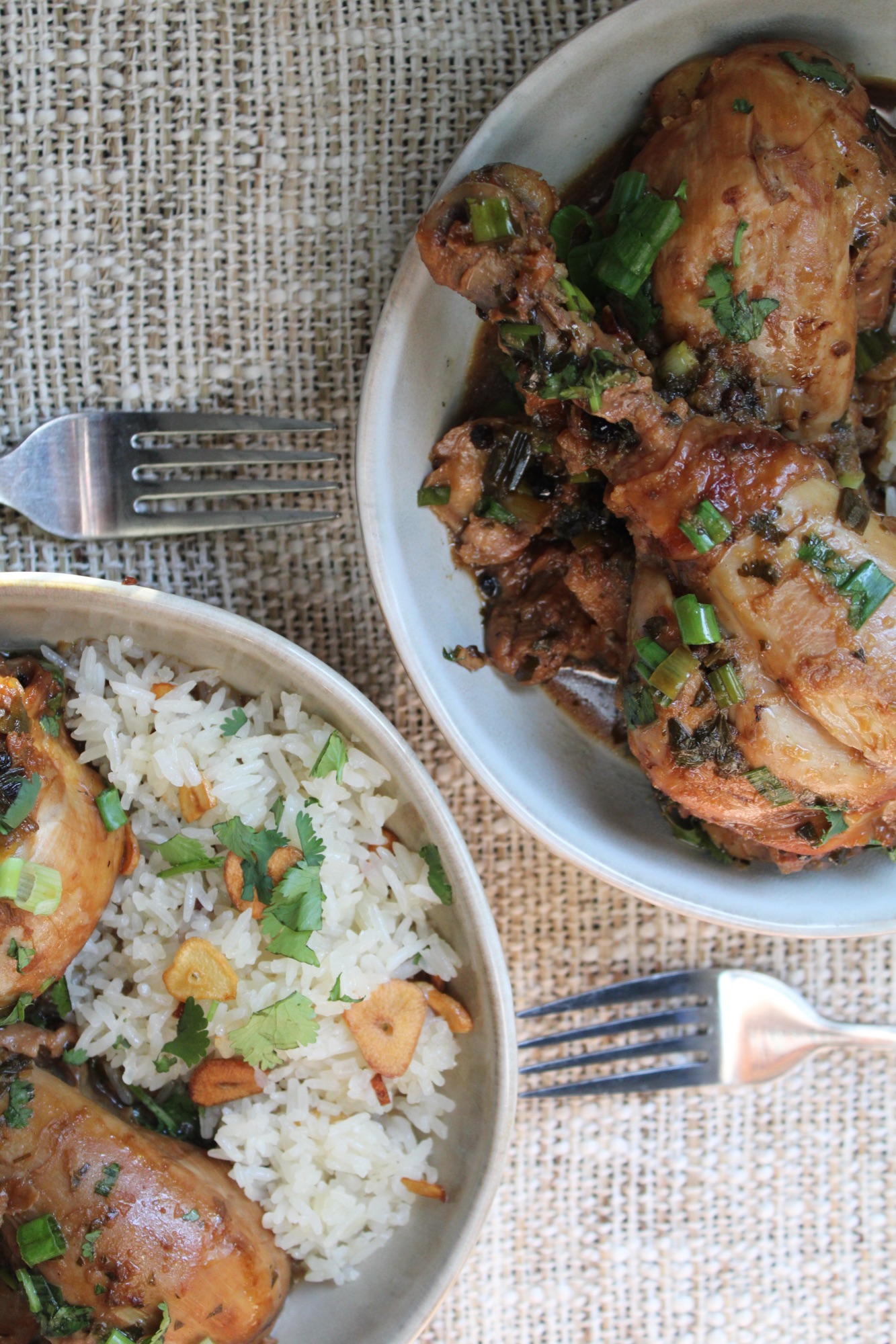 Menu: Adobo chicken, sinangag, & jelly coffee | Recipe Source: butterbeready.com and sweetsimplevegan.com